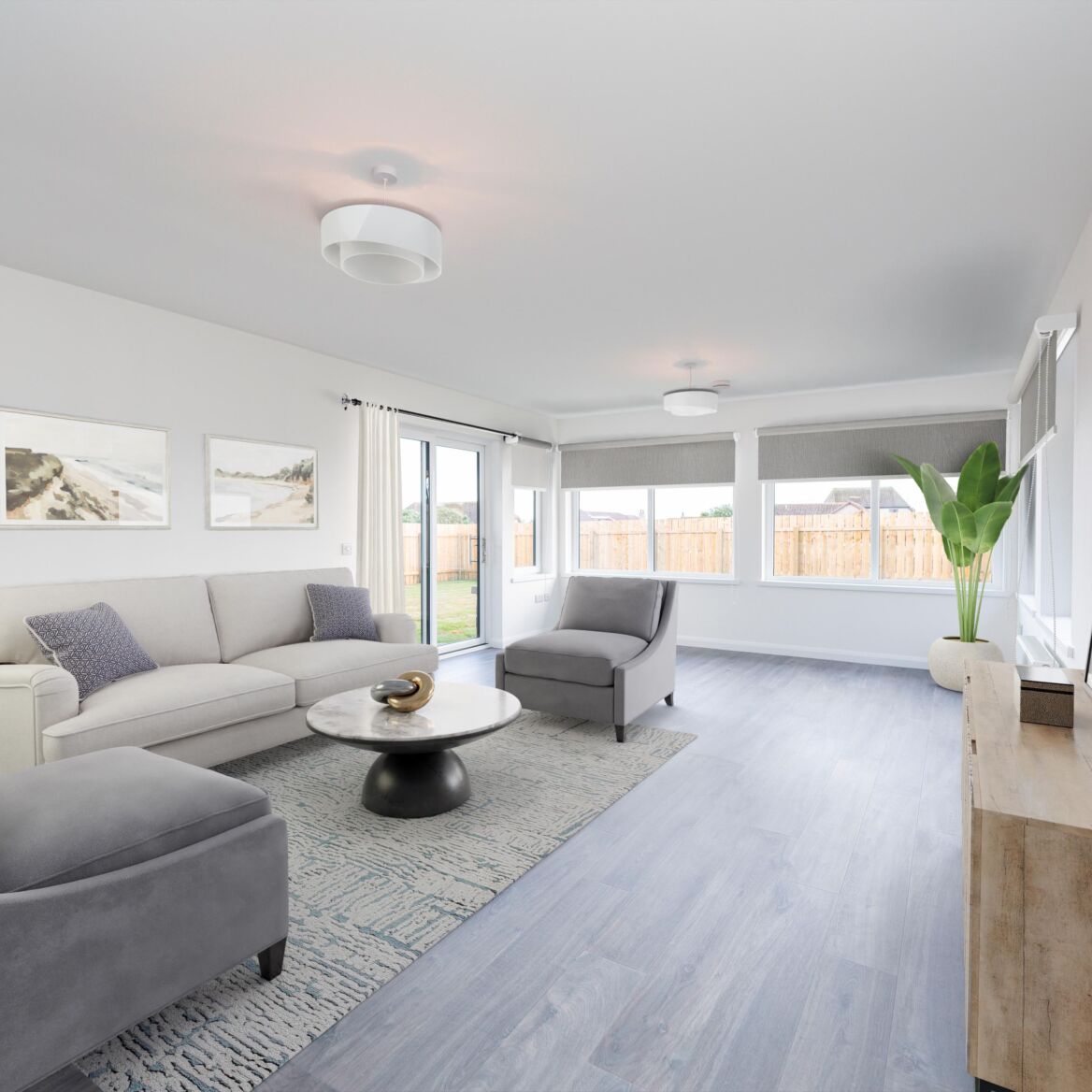 Packed with charming features inside and out, the Esselmont offers perfectly proportioned living accommodation, all on one level. The large windows to the front-facing lounge make the room feel light and airy, and the patio doors from the open plan kitchen/dining room make it a perfect space for entertaining. A separate utility room gives access to the attached garage. Each of the three double bedrooms has built-in mirrored wardrobes. The master bedroom is also fitted with an en-suite shower room, and there is a family bathroom.