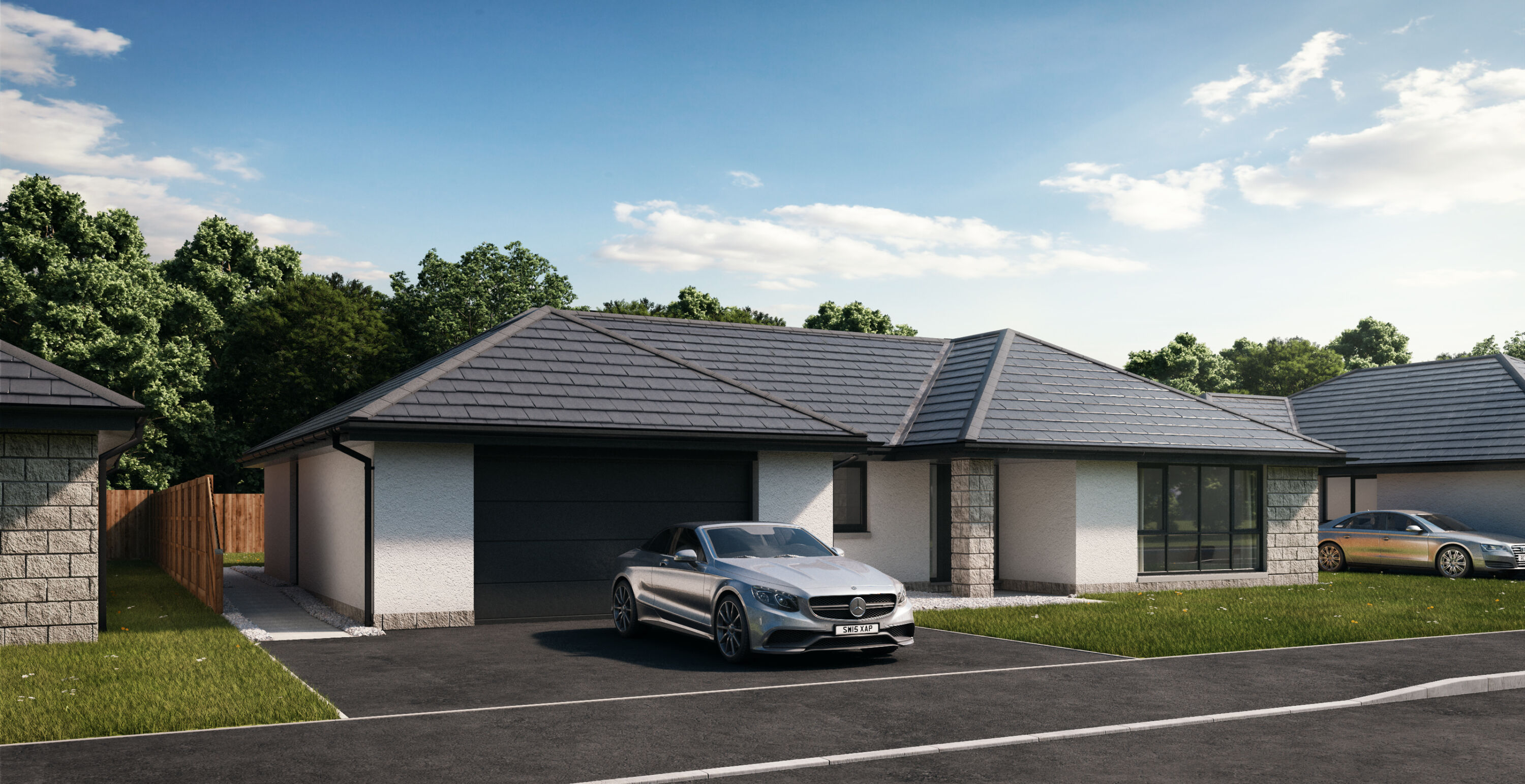 The modern design of the Ythsie provides a generous family home with the added benefit of being all on one level. The impressive lounge and study are front facing, bright and airy. The open plan kitchen/dining room is perfect for relaxed living and allows easy access to the garden. The separate utility room allows entry from the integral double garage. The master bedroom benefits from an en-suite shower room, while the three further double bedrooms boast built-in storage and are served by a family bathroom.